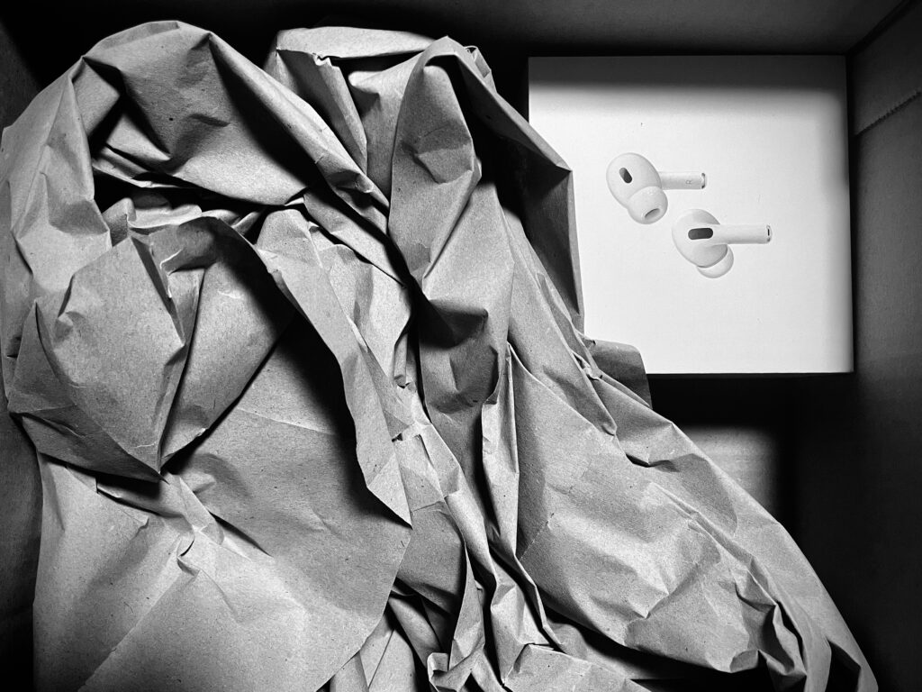 4年使った第一世代はバッテリーが2時間ちょいしか持たない&トンネルで音がバグる&触るとキュキュキュと高音が鳴るという感じなので、ほな第二世代を買うか~と深夜にAmazonでポチ~。19時に届いたよ。早い。