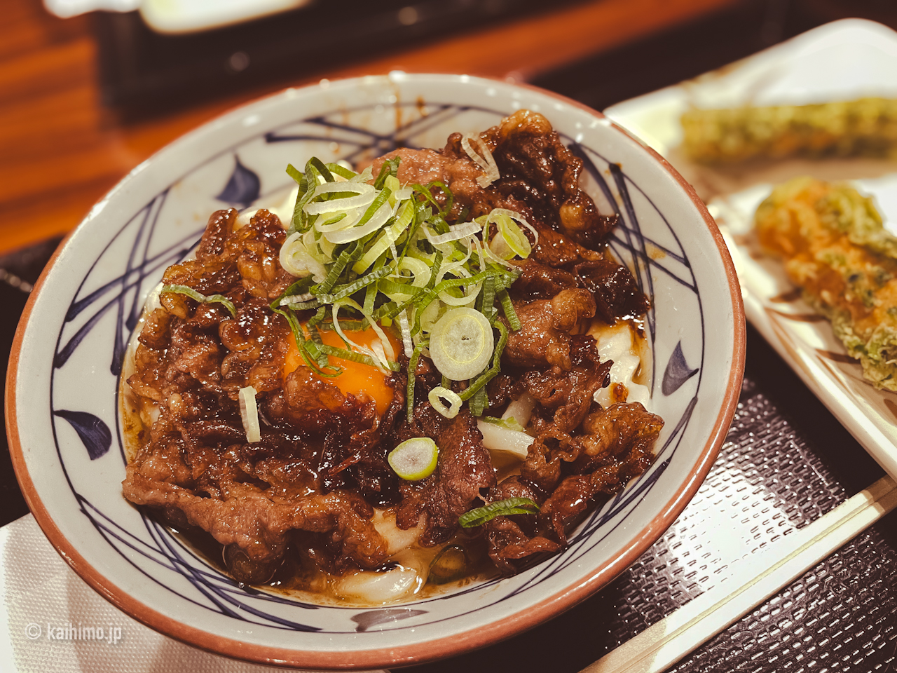 丸亀製麺で「鹿児島黒牛 和牛すき焼き釜玉うどん」を食ス。